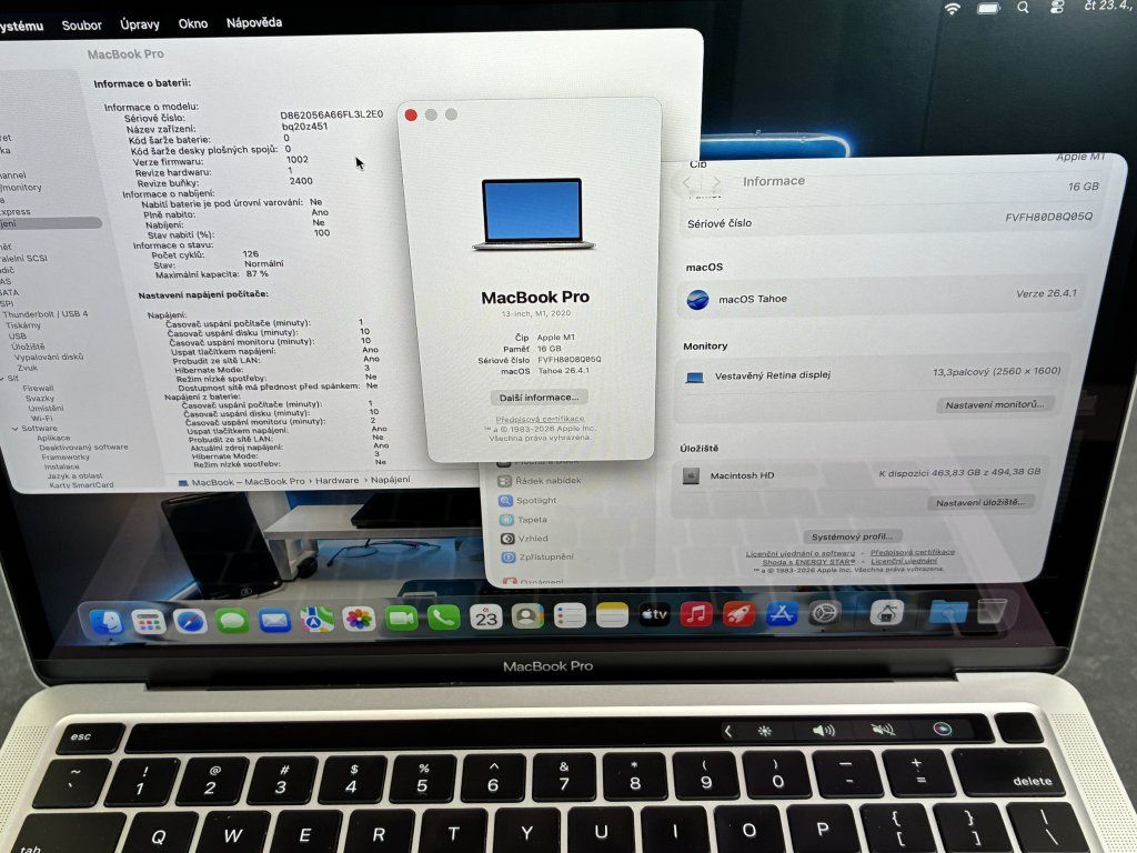 🔋 Baterie: 126 cyklů / 87 % kapacity.