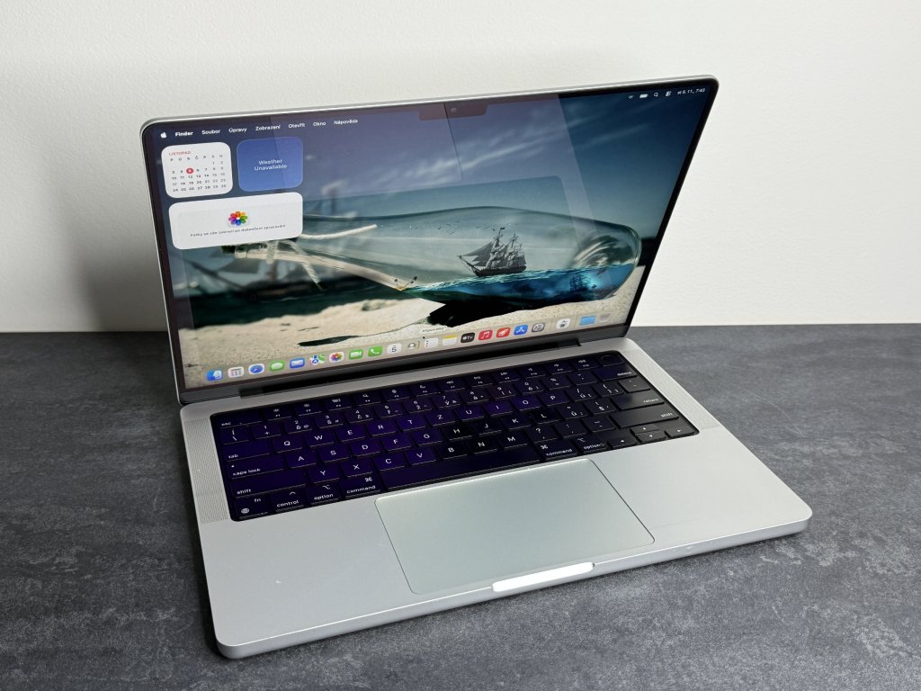 Nový MacBook Pro v generaci pro rok 2021 s ještě výkonnějším procesorem Apple rodiny M1. 14.2" Liquid Retina XDR displej 3024 × 1964 bodů s technologií ProMotion až 120 Hz a širokým barevným rozsahem (P3), procesor Apple M1 Pro, až 14jádrové GPU pro M1 Pro, až 32 jader pro M1 Max, Wi-Fi ax, Bluetooth 5.0, 3x Thunderbolt 4/Type-C, HDMI, MagSafe 3, slot SDXC, kamera FaceTime 1080p, Touch ID, Force Touch trackpad, klávesnice Magic Keyboard, hliníková konstrukce, operační systém macOS Monterey.