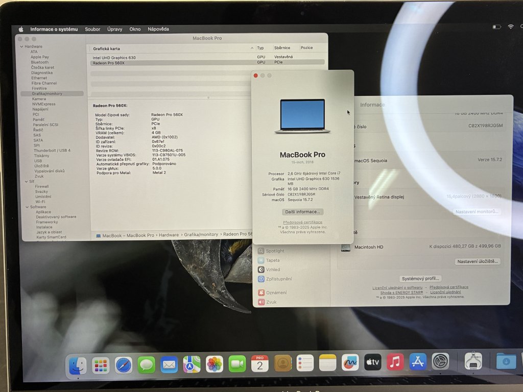 | Grafika: | Radeon Pro 560x 4 GB, Intel HD Graphics 630 1536 MB |