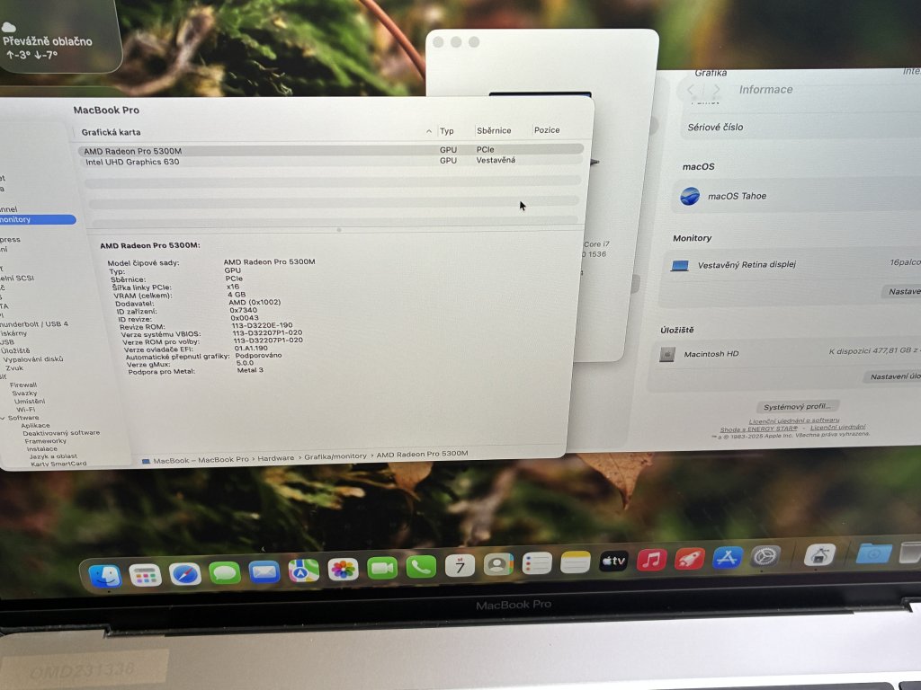 | Grafika: | Radeon Pro 5300M 4 GB, Intel UHD Graphics 630 1536 MB |