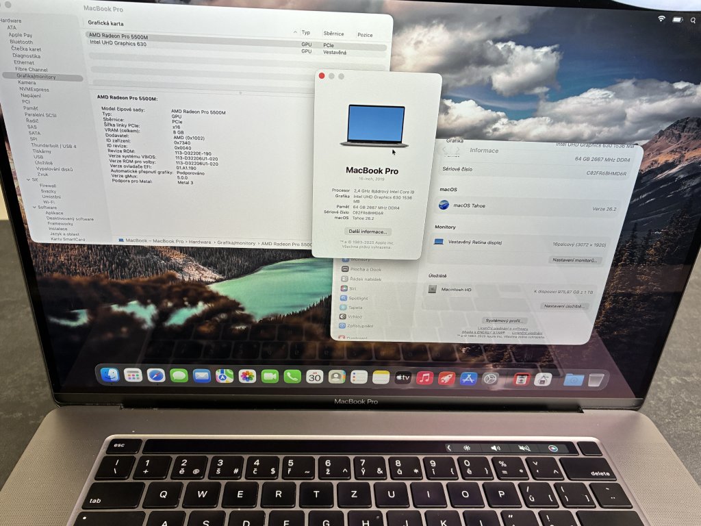 | Grafika: | Radeon Pro 5500M 4 GB, Intel UHD Graphics 630 1536 MB |