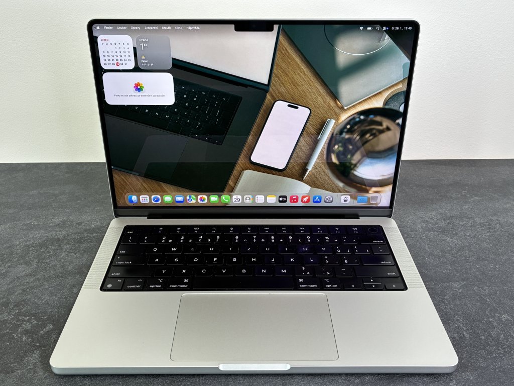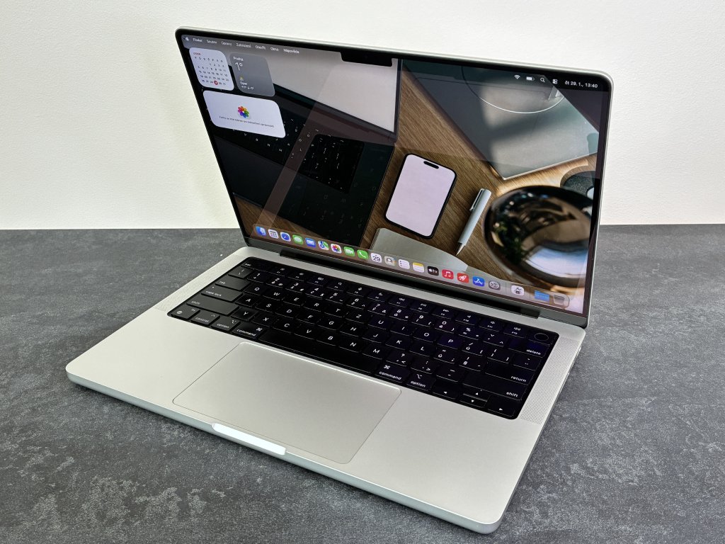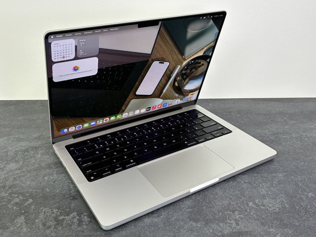Nový MacBook Pro v generaci pro rok 2021 s ještě výkonnějším procesorem Apple rodiny M1. 14.2" Liquid Retina XDR displej 3024 × 1964 bodů s technologií ProMotion až 120 Hz a širokým barevným rozsahem (P3), procesor Apple M1 Pro, až 14jádrové GPU pro M1 Pro, až 32 jader pro M1 Max, Wi-Fi ax, Bluetooth 5.0, 3x Thunderbolt 4/Type-C, HDMI, MagSafe 3, slot SDXC, kamera FaceTime 1080p, Touch ID, Force Touch trackpad, klávesnice Magic Keyboard, hliníková konstrukce, operační systém macOS Monterey.